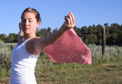 This shawl is from the "Flying Diamonds" pattern that I bought on Ravelry. I crocheted it with fine, 100% cotton, cone yarn that I had in my weaving stash and a size "F" hook. It took a couple of weeks to make and it was a lot of fun. I'm so happy with the results. Here are some pictures I took before it was blocked and while we were still in Colorado...