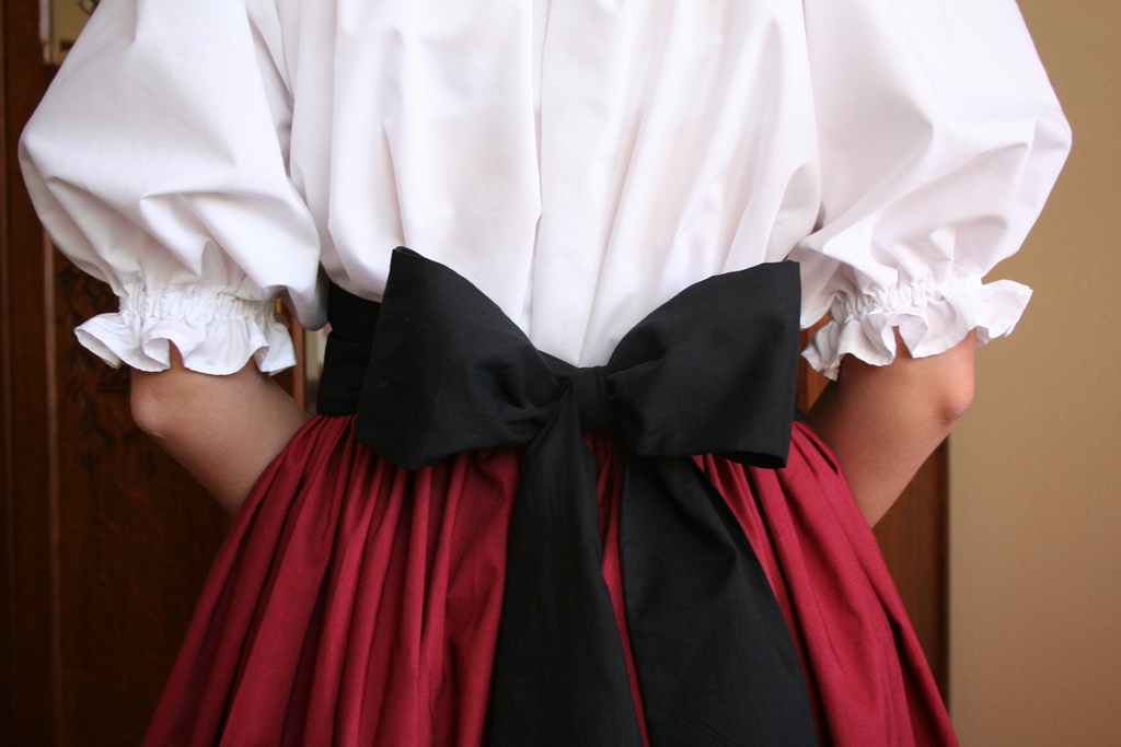 The skirt went great! The blouse, not so much. We ended up buying a pattern and more fabric for the blouse. That worked out much better. She made a black sash to finish it off. I'm so impressed that she pulled this off in one week and she is too. It was very exciting when she tried it on for the first time...